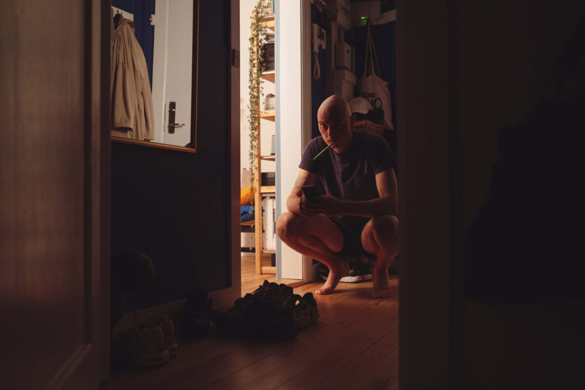 I 2021 blev jeg diagnosticeret med testikelkræft og gennemgik en operation, hvor jeg forventede, at det ville være nok til at blive rask. Men kræften havde spredt sig til en eller flere lymfer i maven, hvilket betød, at jeg måtte igennem kemoterapi. I den forbindelse valgte jeg at skabe en fotoserie, hvor jeg ønskede at arbejde med konceptet “det opstillede billede.” Alle billederne blev taget med fjernudløsning og stativ, og projektet blev både en kunstnerisk og personlig udforskning af min kamp mod sygdommen. Jeg er stolt af resultatet, men håber, at jeg ikke skal lave en sådan serie igen. Nogle af mine personlige favoritbilleder fra projektet er nr. 2, 22, 25, 48 og 49.