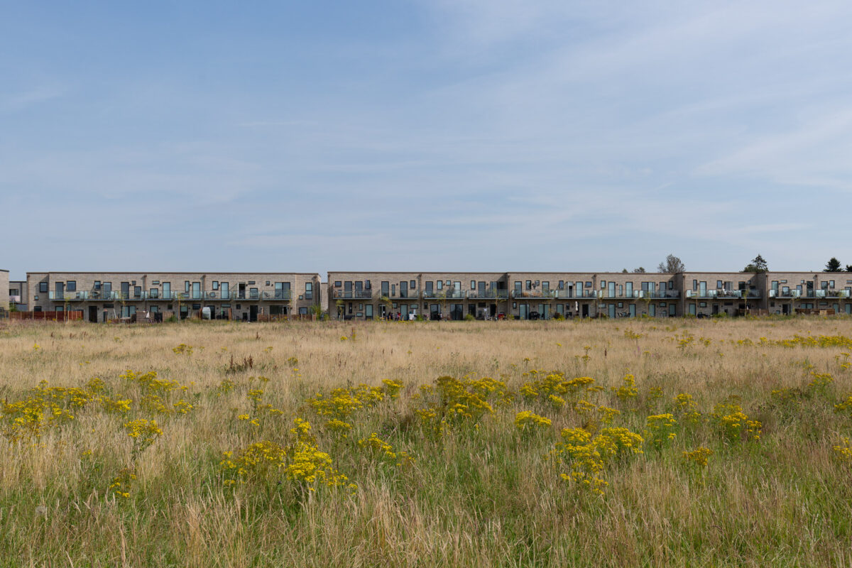 “Infrastruktur og forskansninger krydser over landskabsfladen og sammenvæver fotoserien fra Tilst; 1970’er-parcelhuskvarterer stilles op imod boligenheder fra vores samtid og viser en forvandling, som stiller spørgsmål til, hvordan vi bygger fremtidens forstad.